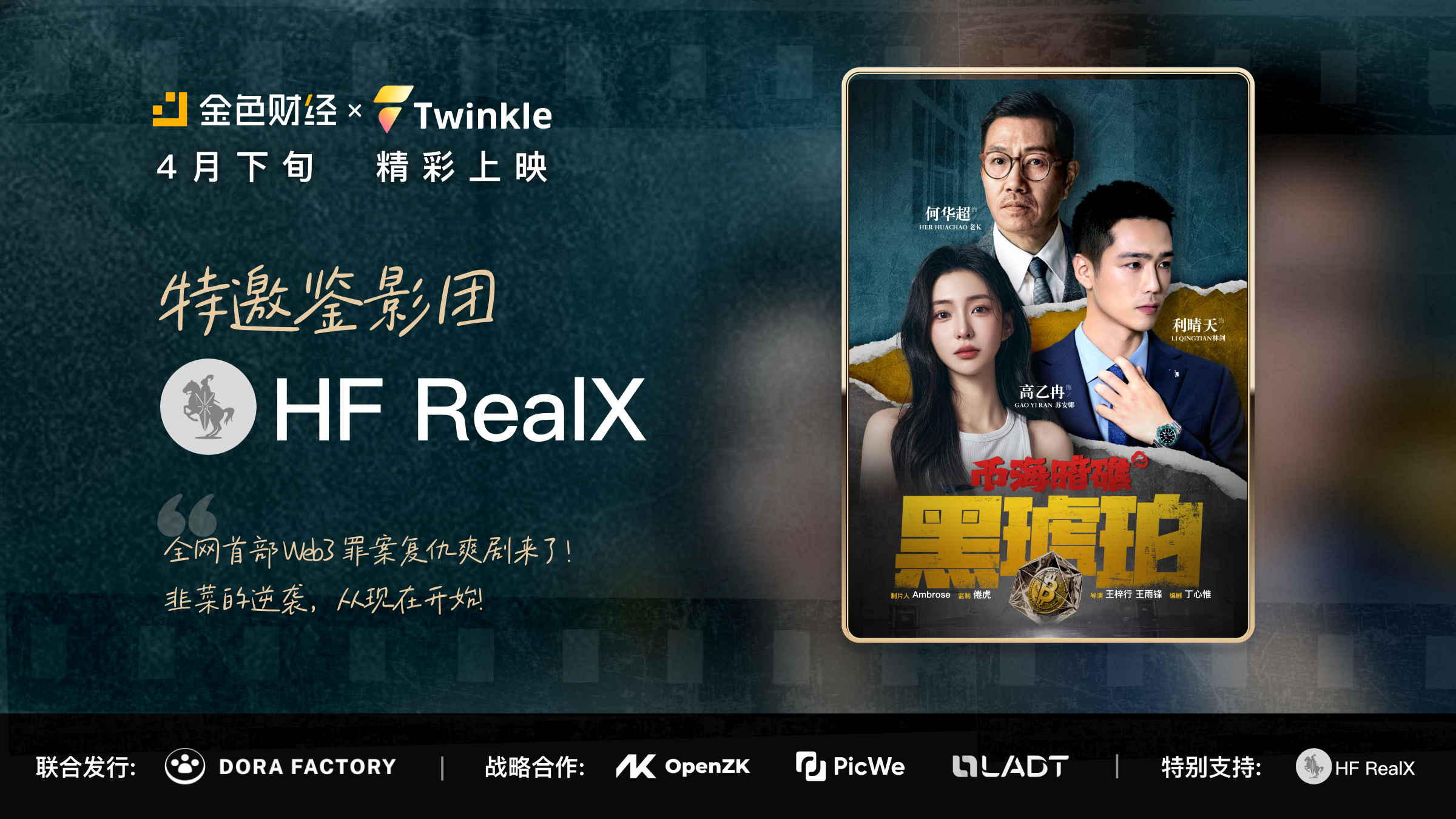 在区块链叙事日益深刻的时代,HF RealX作为RWA赛道的基础设施构建者,携手金色财经,重磅参与加密主题短片《币海暗礁之黑琥珀》的摄制与呈现。