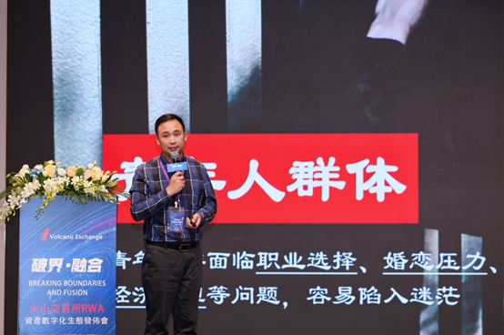 經濟學博士、北大光華民院教研所研究員蔡霖在演講中介紹V-Chain火山公鏈的講解。通過V-Chain火山公鏈連接現實世界的資產,並實現這些資產的數字化,不僅能有效推動資產的流轉和價值實現,還將進一步推動區塊鏈技術在現實經濟中的應用。